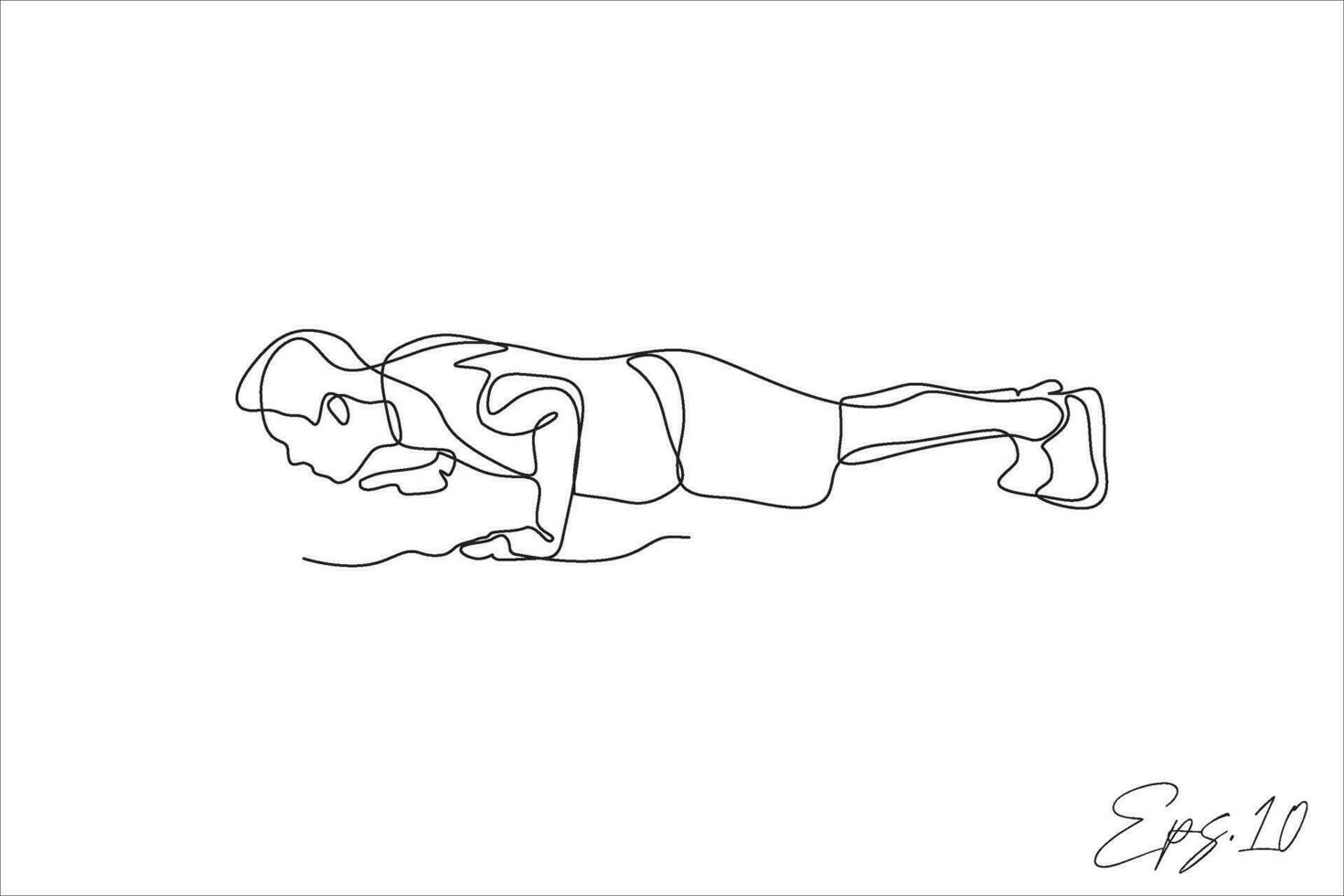 continuous line vector illustration of person doing push up exercise Pro Vector