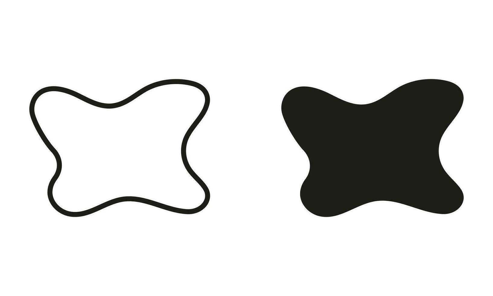 Random Shape, Organic Blob Line and Silhouette Black Set. Abstract Amorphous Splodge. Irregular Liquid Design Form, Stone, Pebble Collection. Isolated Vector Illustration. Pro Vector