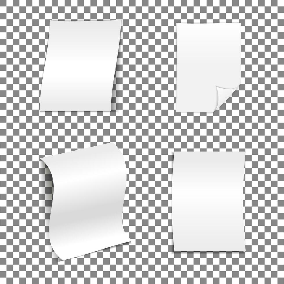 White sheet of A4 paper with a shadow. Rolled sheet of paper. Layout, template, Mockup for your design and advertising. Set 4 in 1 Pro Vector