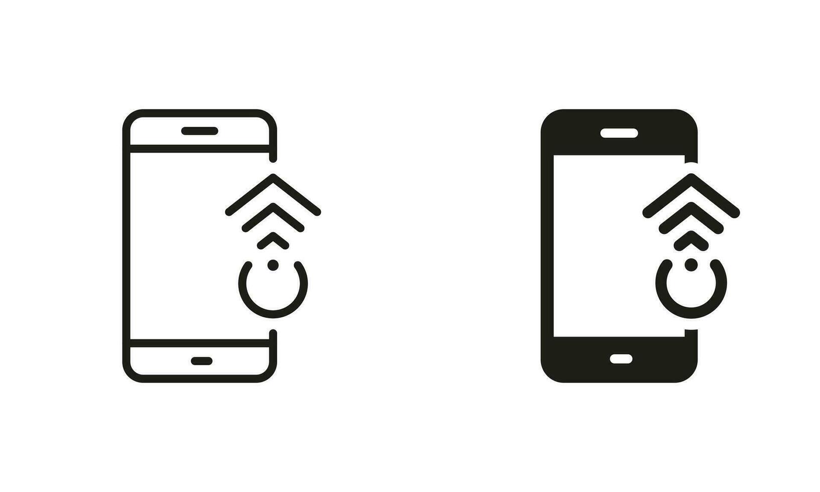 Swipe on Smartphone Line and Silhouette Black Icon Set. Gesture Up on Mobile Phone Pictogram. Touch Screen in Cellphone, Scroll Up in Electronic Device Symbol Collection. Isolated Vector Illustration. Pro Vector