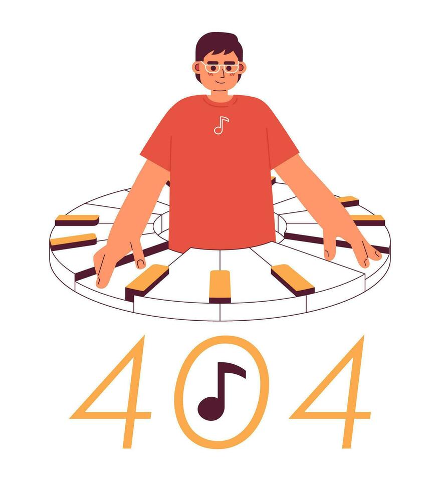 Man playing on piano error 404 flash message. Young man hobby. Empty state ui design. Page not found popup cartoon image. Vector flat illustration concept on white background Pro Vector