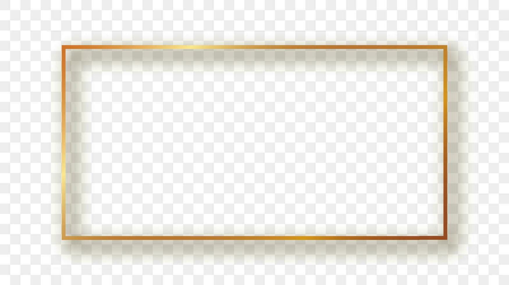 Gold glowing rectangular shape frame with shadow isolated on background. Shiny frame with glowing effects. Vector illustration Pro Vector