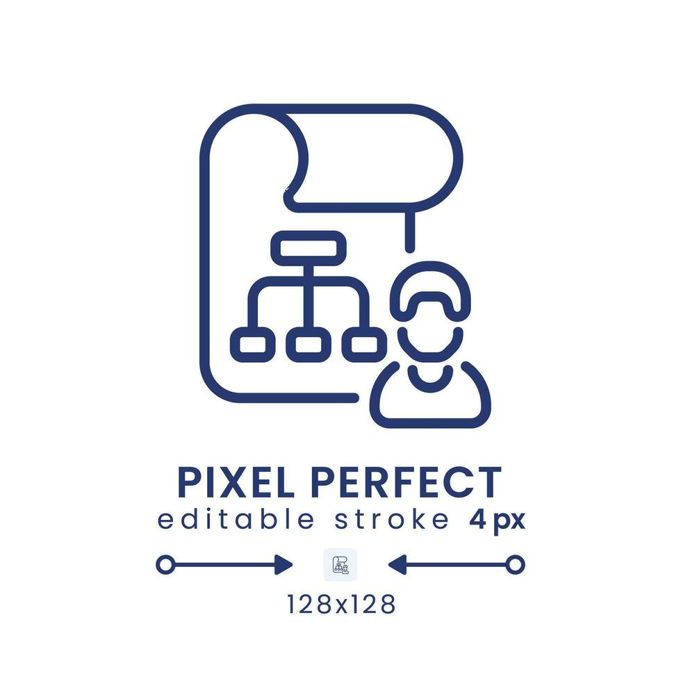 Project management linear desktop icon. Teamwork time tracking. Collaboration software. Pixel perfect 128x128, outline 4px. GUI, UX design. Isolated user interface element for website. Editable stroke Pro Vector