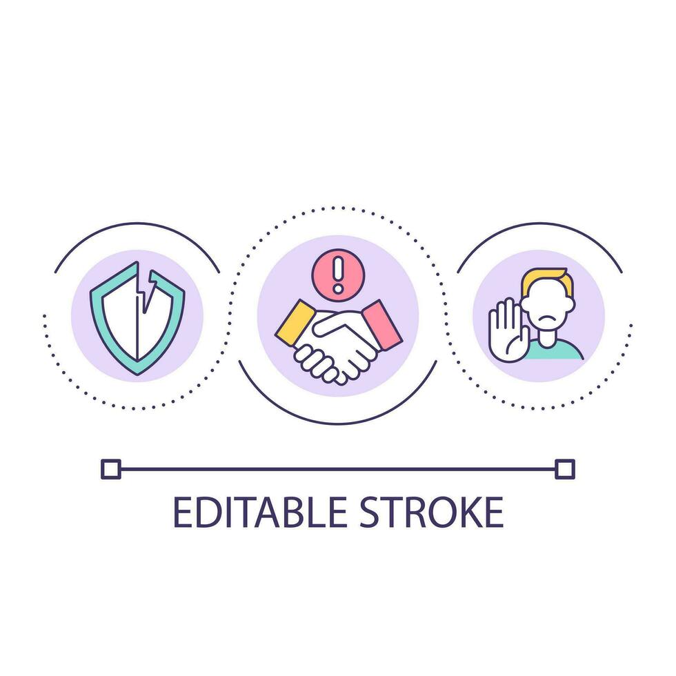 Avoid unreliable agreements loop concept icon. Reduce insecure deals. Safe business partnership abstract idea thin line illustration. Isolated outline drawing. Editable stroke Pro Vector
