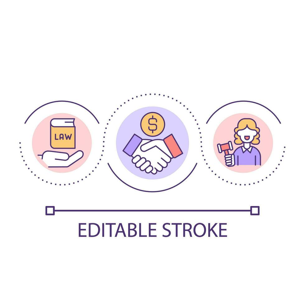 Corrupted justice system loop concept icon. Bribery in court. Venal judge. Illegal actions abstract idea thin line illustration. Isolated outline drawing. Editable stroke Pro Vector