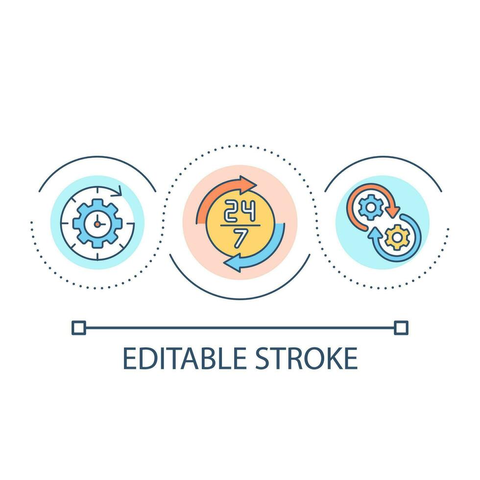 Around clock schedule loop concept icon. Daily access. Non stop working. Timetable optimization abstract idea thin line illustration. Isolated outline drawing. Editable stroke Pro Vector