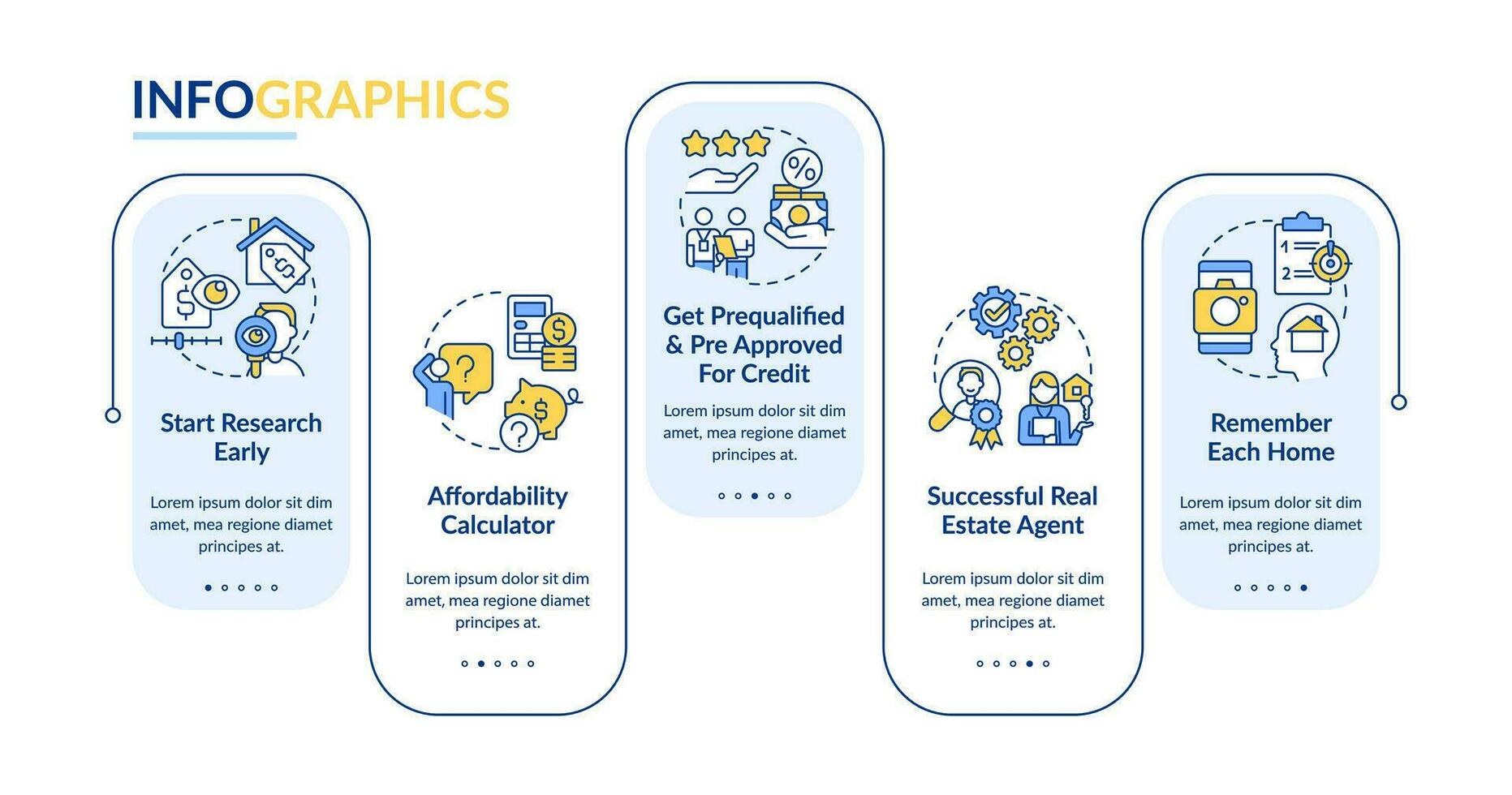 Home purchase process rectangle infographic template. Real estate guide. Data visualization with 5 steps. Editable timeline info chart. Workflow layout with line icons Pro Vector