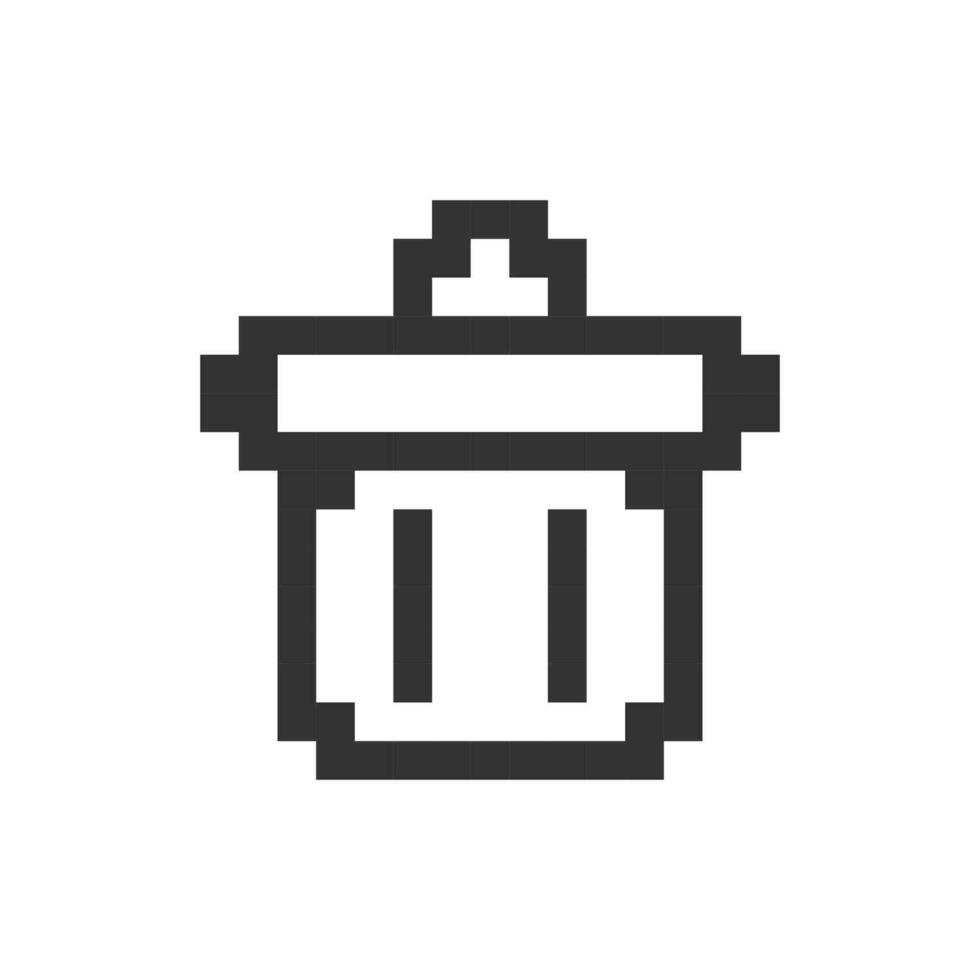 Trash can pixelated ui icon. Recycle bin. Garbage container. Dumpster management. Editable 8bit graphic element. Outline isolated vector user interface image for web, mobile app. Retro style Pro Vector