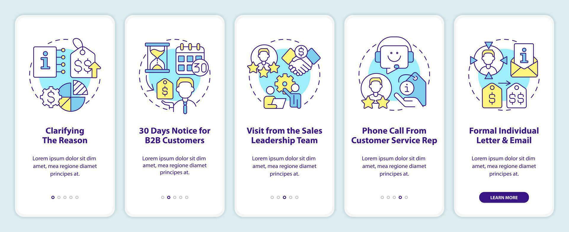 Communicate price increase guidelines onboarding mobile app screen. Walkthrough 5 steps editable graphic instructions with linear concepts. UI, UX, GUI template Pro Vector