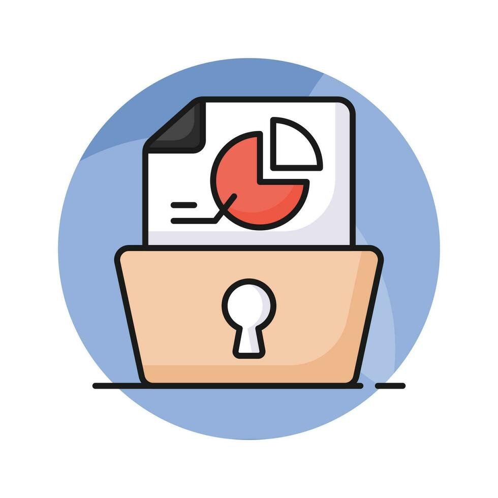 Pie chart on page with keyhole showing concept vector of secure data analysis Pro Vector