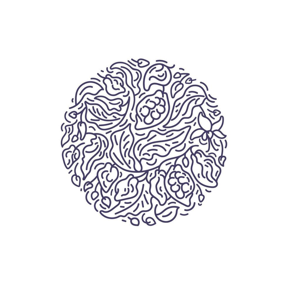 Abstract cocoa label in circle. Art line pattern Pro Vector