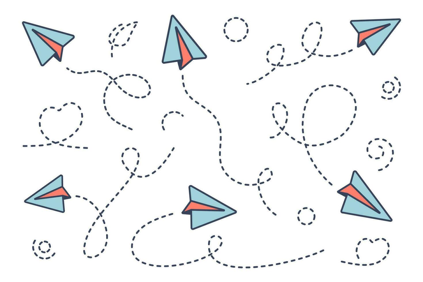 Set of paper airplane icon. Hand drawn paper plane with line direction. Sending message concept. Business icon. Vector flat illustration for landing page, social networking business startup, web Pro Vector