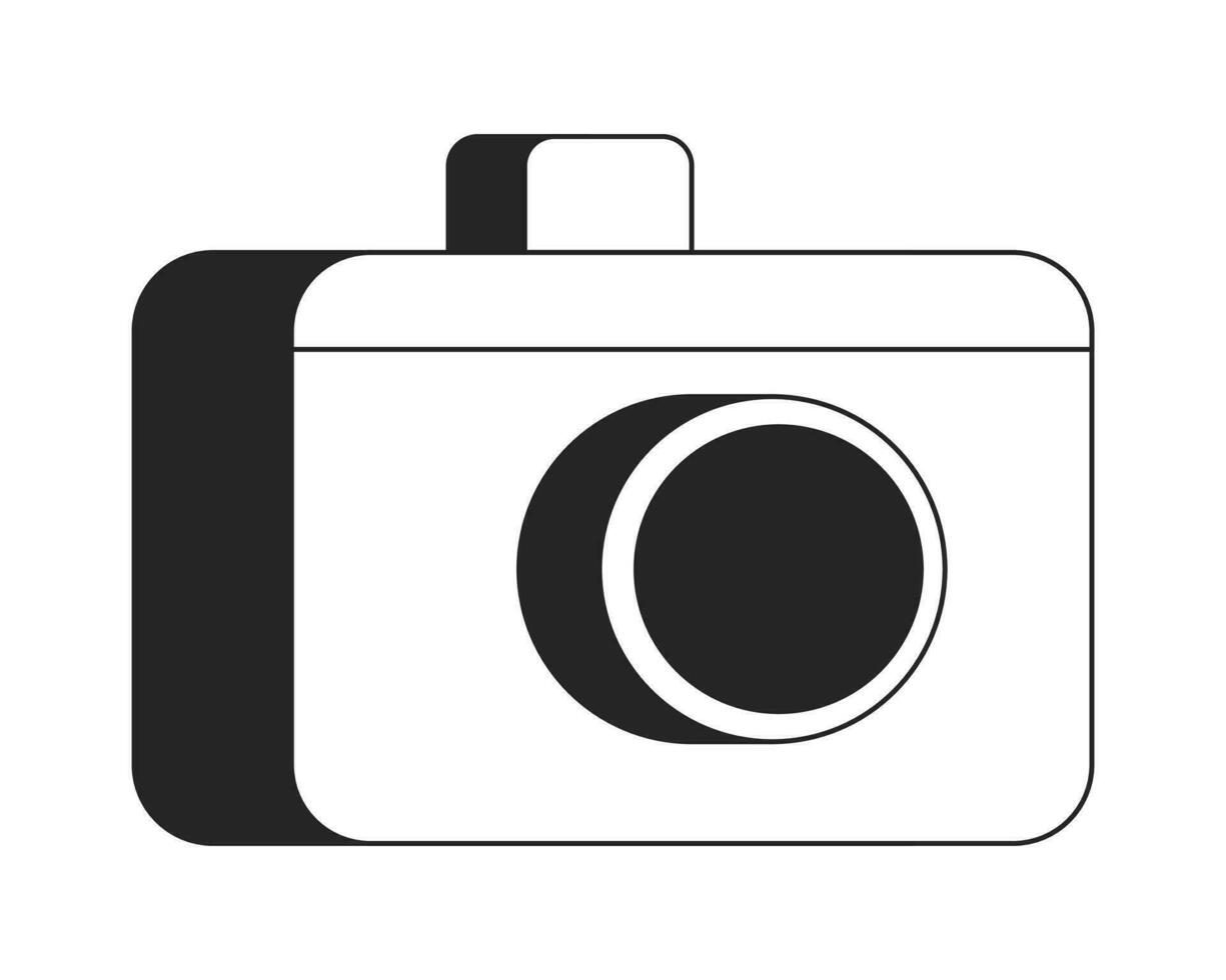 Professional camera flat monochrome isolated vector object. Device for taking picture. Editable black and white line art drawing. Simple outline spot illustration for web graphic design Pro Vector