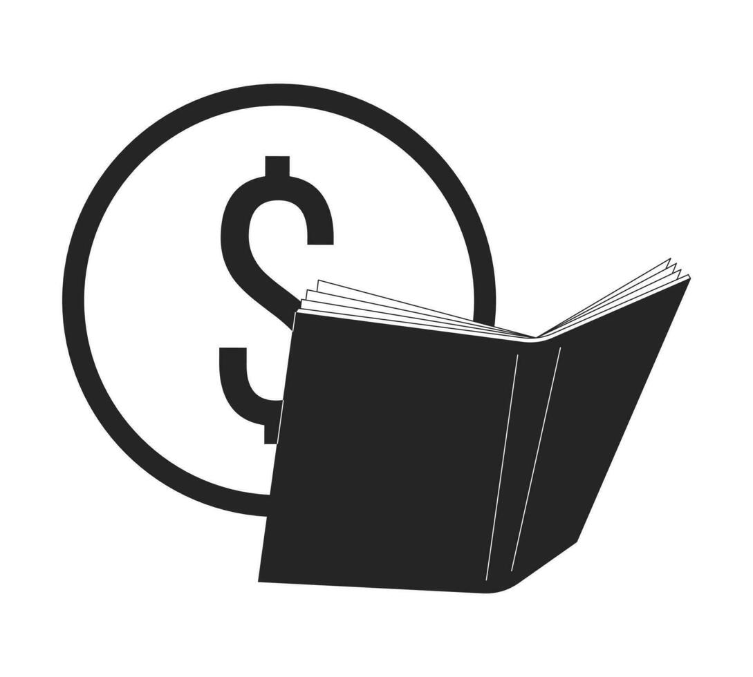 Accounting book bw concept vector spot illustration. Finance management 2D cartoon flat line monochromatic object for web UI design. Editable isolated outline hero image Pro Vector