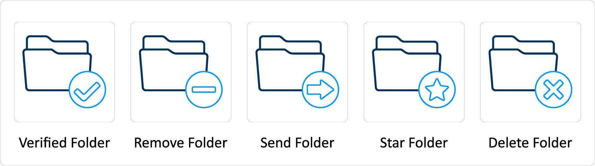 A set of 5 Extra icons as verified folder, remove folder, send folder Pro Vector and Pro SVG