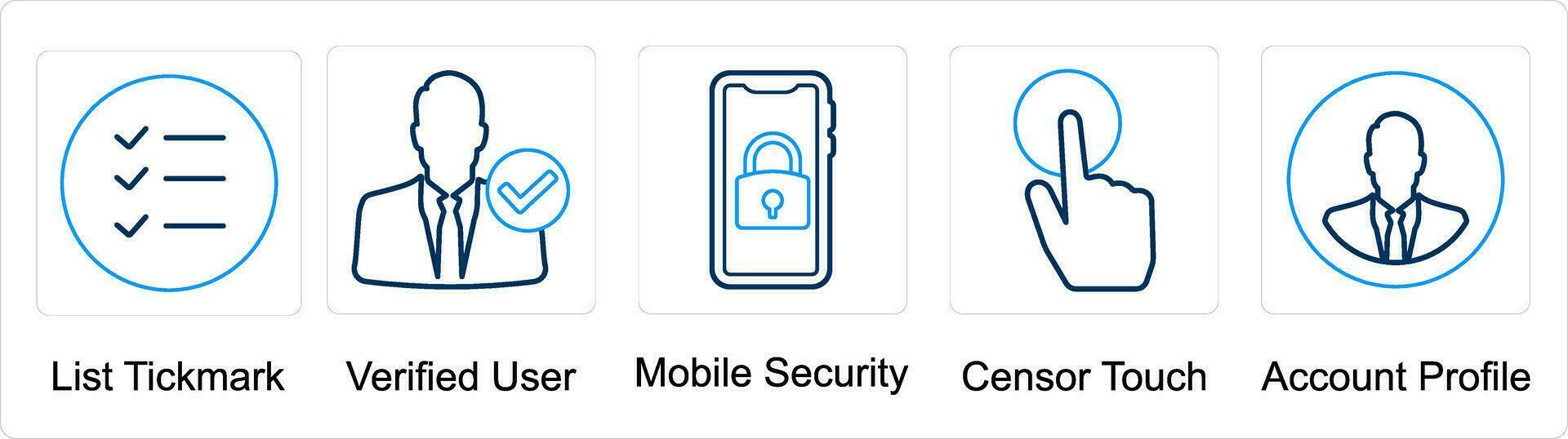A set of 5 mix icons as list tickmark, verified user, mobile security Pro Vector and Pro SVG