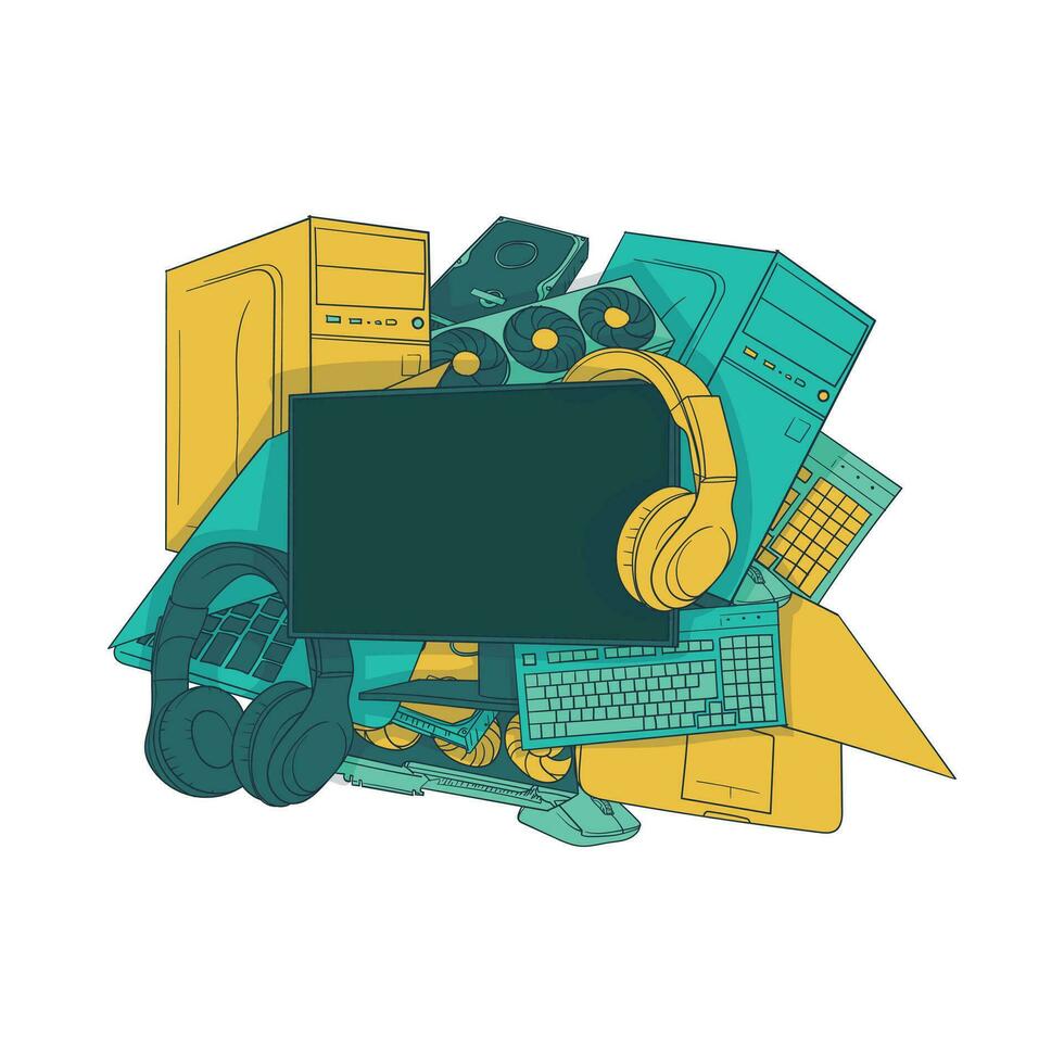 Doodle art of computer design in green and yellow for computer or programming day campaign design Pro Vector