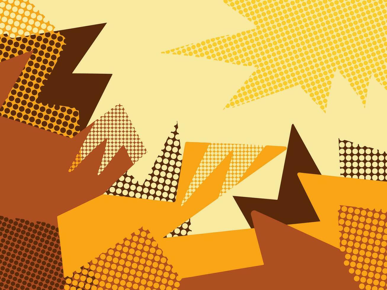Brown and yellow abstract shapes vector background with polkadots circle pattern parts isolated on landscape template.