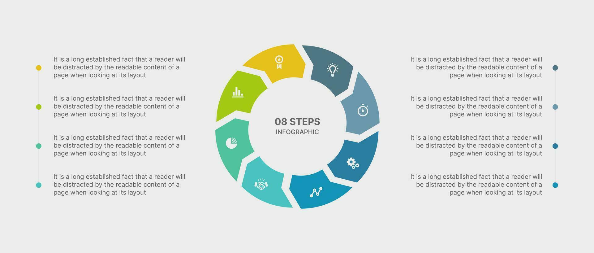 Circle Infographic Template Design Element With 8 Steps or Options Pro Vector