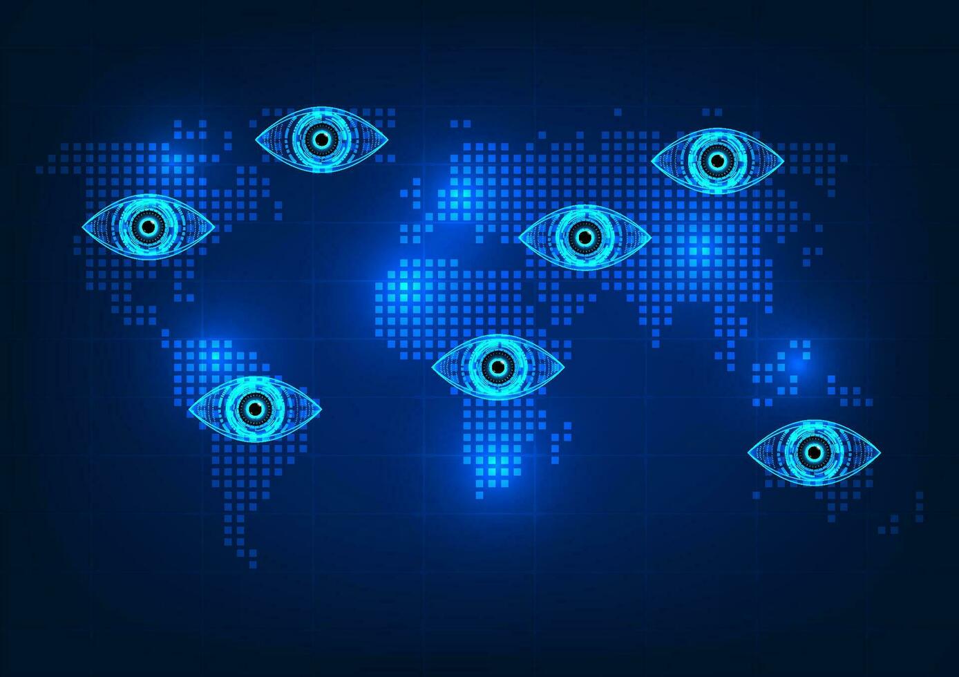 eye technology placed on the world map for each continent It's a vector illustration. Concept technology can provide access to information all over the world. Both place and culture Pro Vector