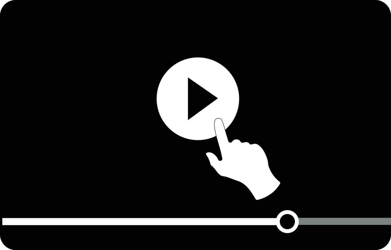 Multimedia video player shape with a hand cursor pressing a play button Pro Vector