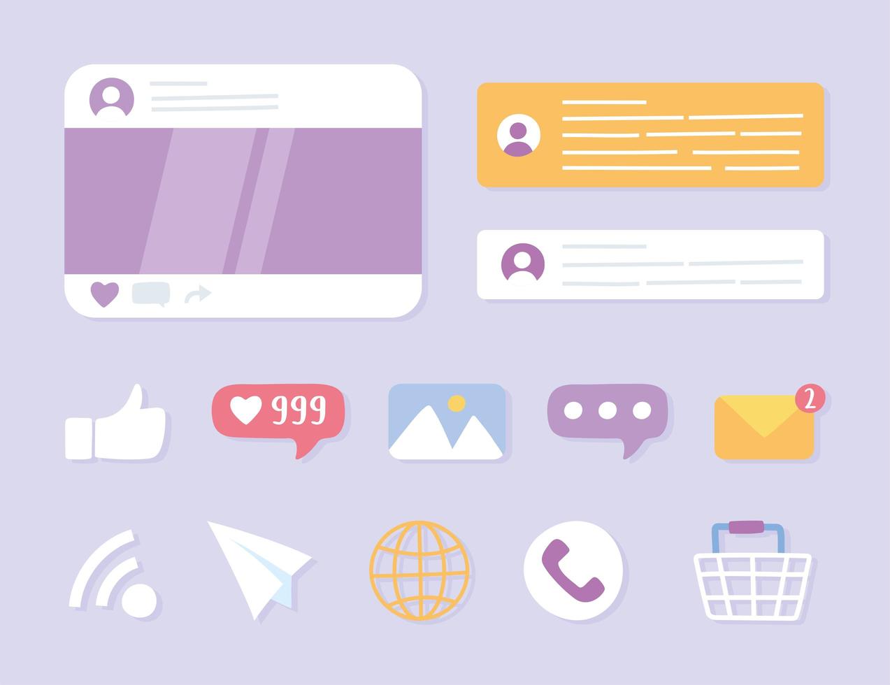 social network communication system and technologies telephone share message chat image wifi and others apps icons vector