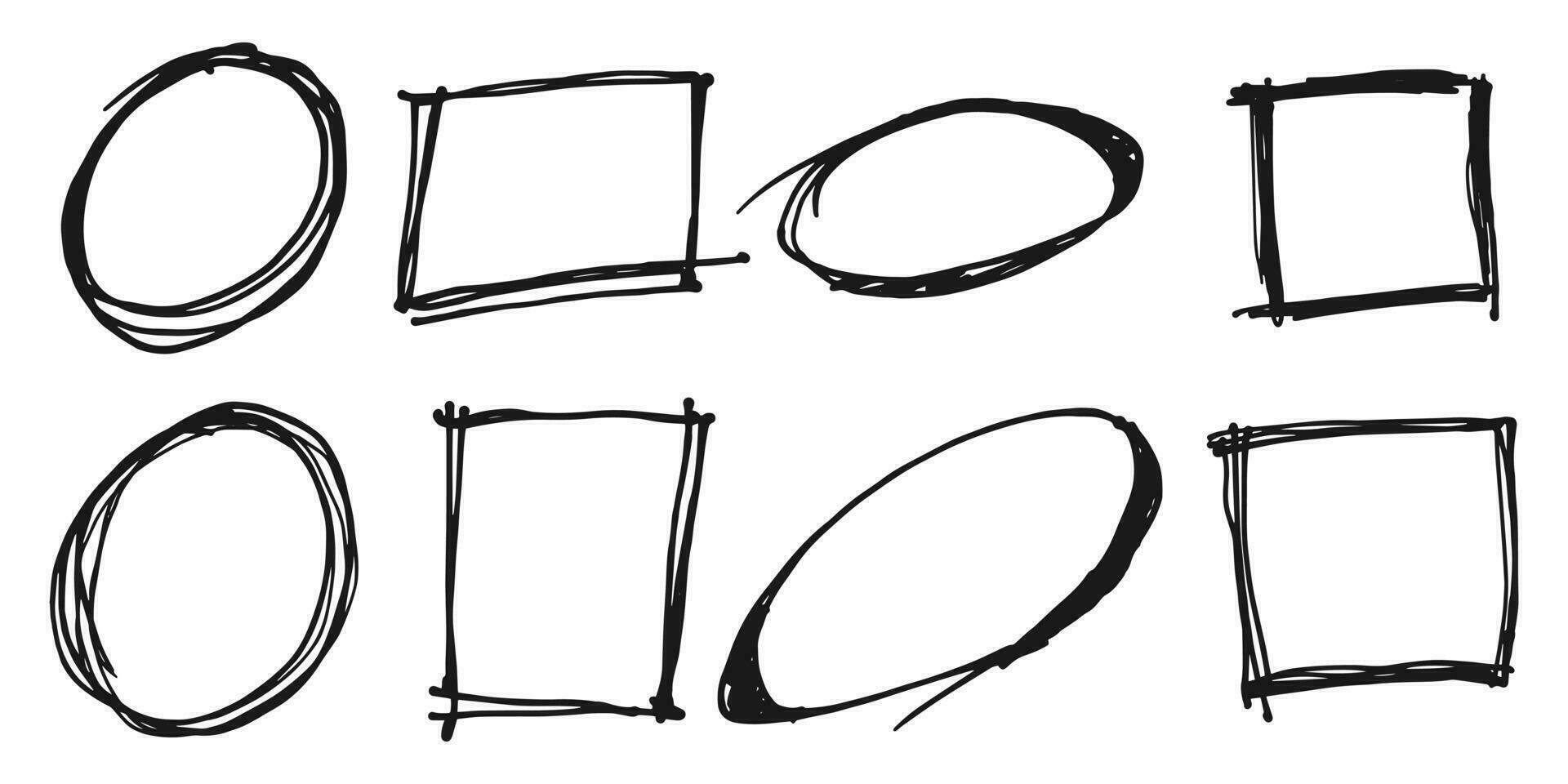 Hand drawn scribble lines on set. doodle borders lines, curves, frames for message note mark design element. vector illustration Pro Vector
