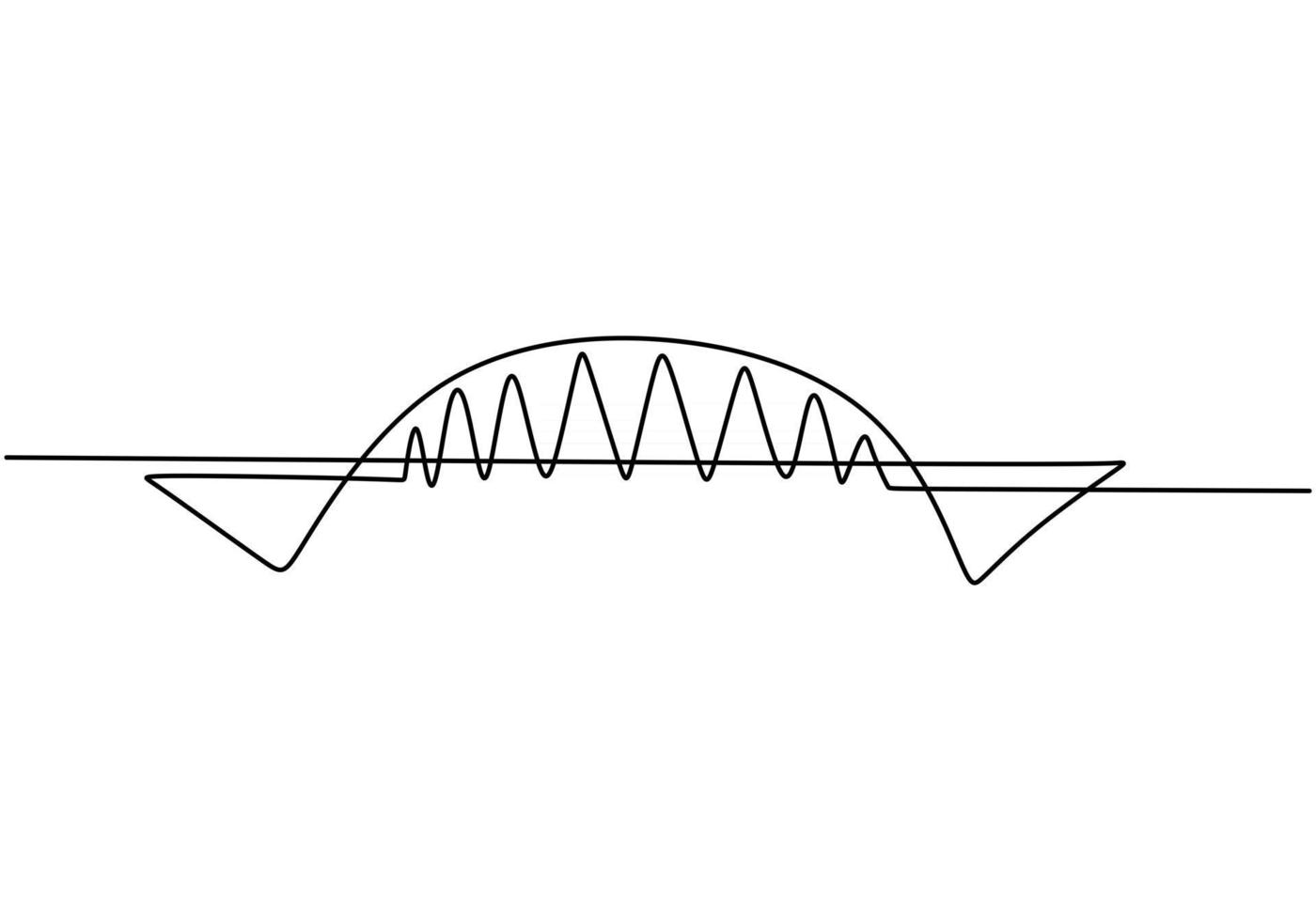 Giant bridge over river. Continuous one line of bridge drawing design. Simple modern minimalist style isolated on white background. Pro Vector