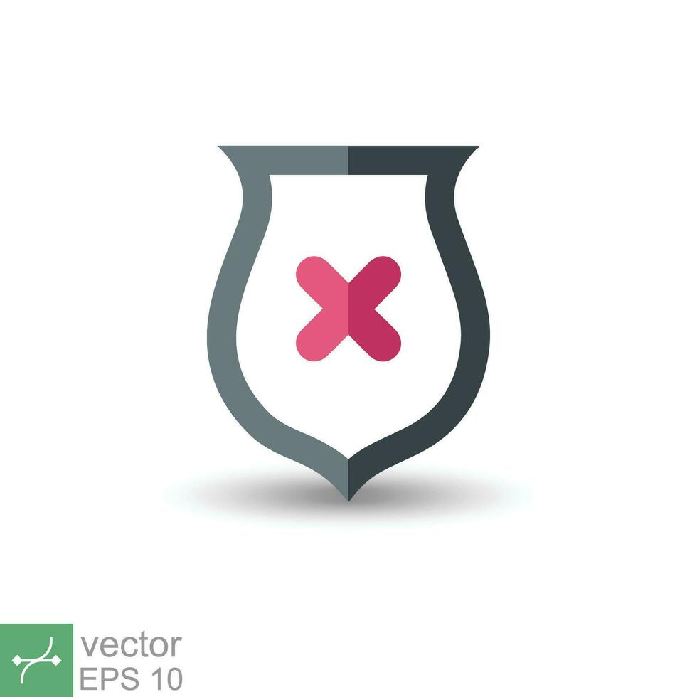 Shield with cross mark icon. Simple flat style. Decline, check mark false, danger protection, red alert, unsafe concept. Vector illustration symbol isolated on white background. EPS 10. Pro Vector