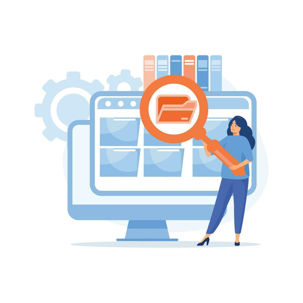 File manager and data storage, Employees searching and indexing file documents, flat vector modern illustration Pro Vector