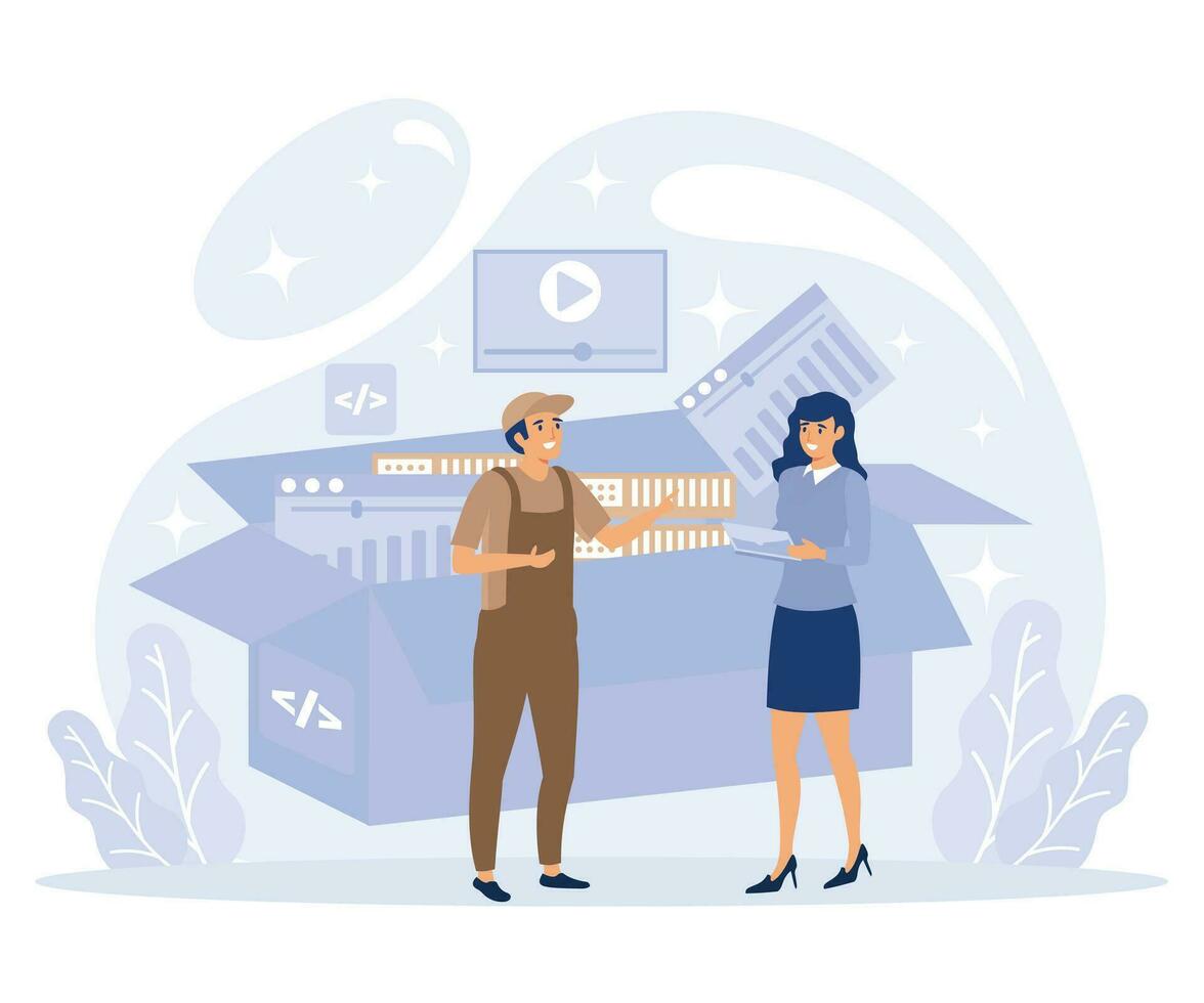 Application service concept, SaaS technology, packaged software, decentralized application, cloud computing, software licensing, flat vector modern illustration Pro Vector