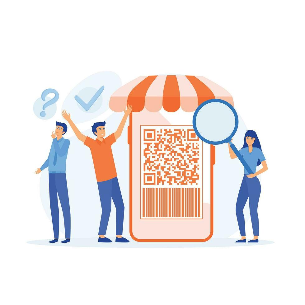 People scanning qr code for payment via smartphone. businesspeople scan code using mobile phone. flat vector modern illustration Pro Vector