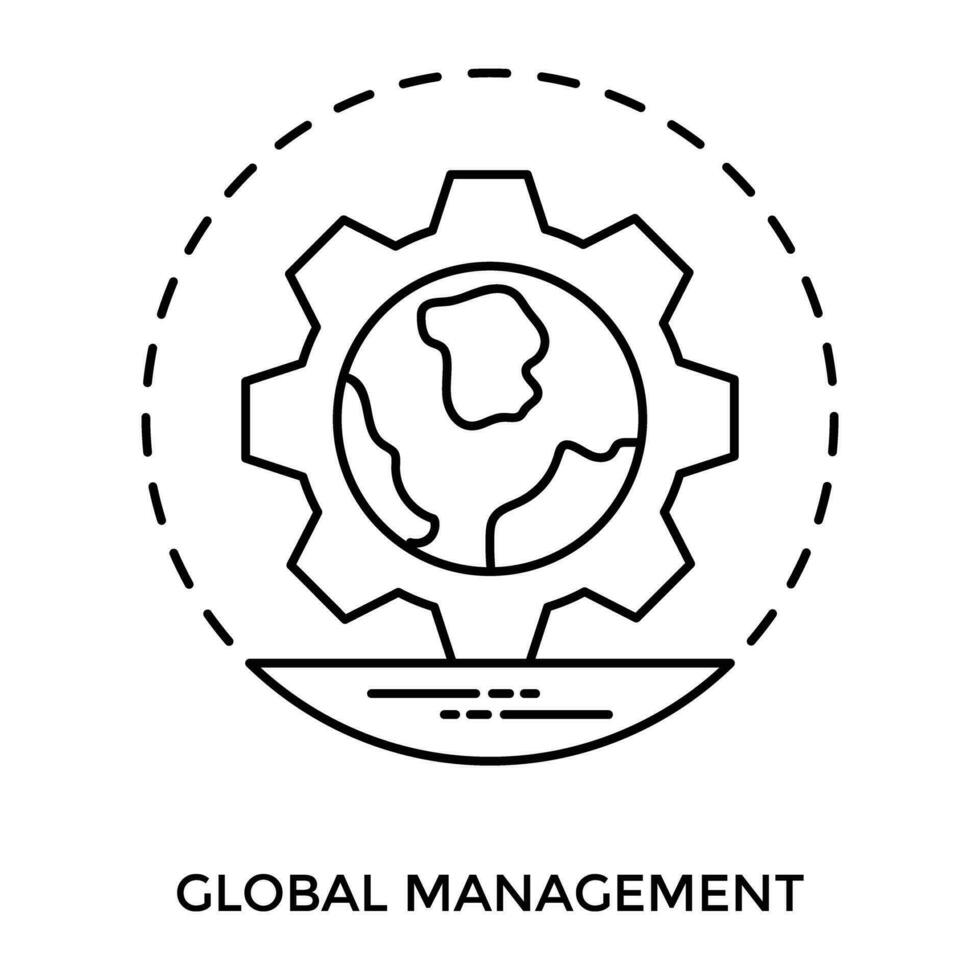 Graphics of a cog having world globe inside, showcasing global management idea Pro Vector
