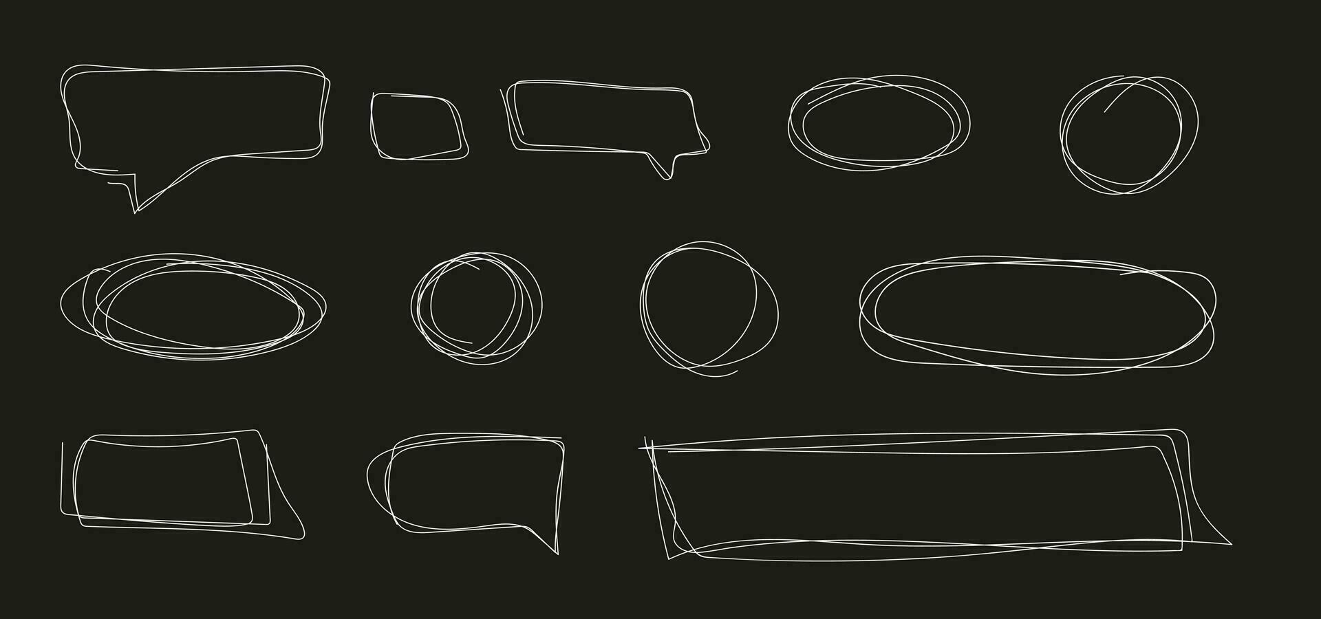 Collection of swirling lines in elements irregular shape - oval, rectangular, round. Text frames and callouts Pro Vector