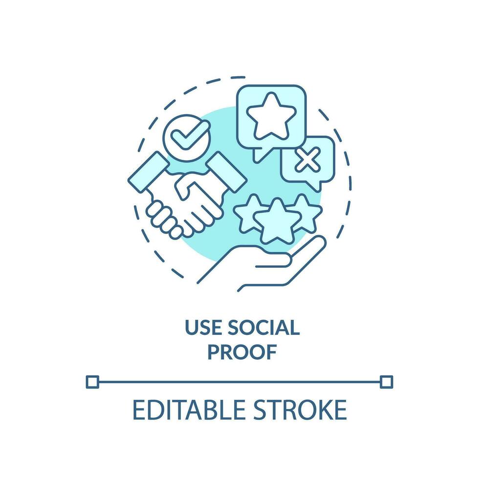 Use social proof soft blue concept icon. Success story. Positive outcome. Client feedback. Sales negotiation. Build trust. Round shape line illustration. Abstract idea. Graphic design. Easy to use Pro Vector