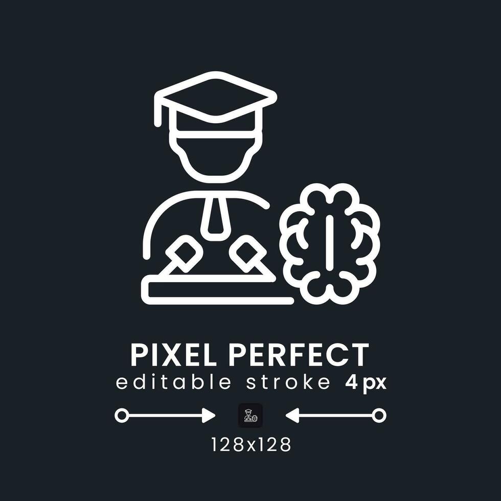 Neuro influencer white linear desktop icon on black. Cognitive neuroscience. Social network. Pixel perfect 128x128, outline 4px. Isolated user interface symbol for dark theme. Editable stroke Pro Vector