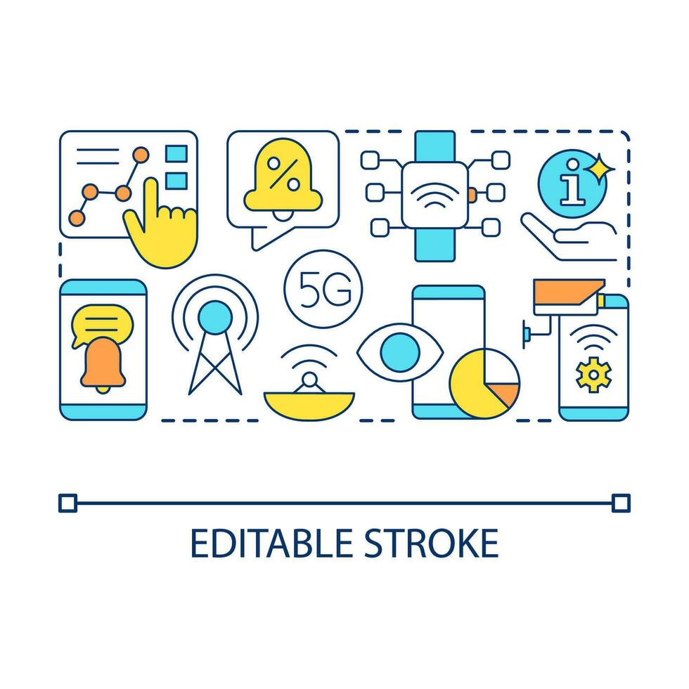 Telecommunication innovation concept icon. IoT technology. Wireless connection. Digital transformation abstract idea thin line illustration. Isolated outline drawing. Editable stroke Pro Vector