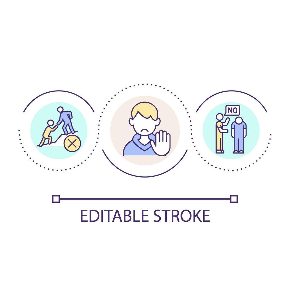 Reject to give help loop concept icon. Absence of empathy to people in trouble. Cruelty abstract idea thin line illustration. Isolated outline drawing. Editable stroke Pro Vector