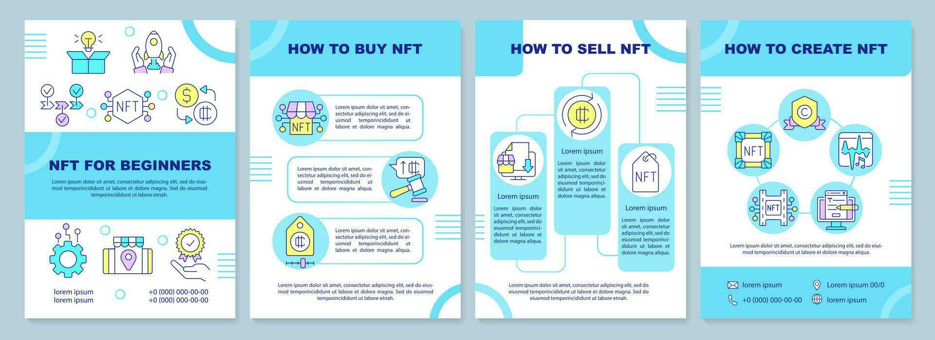 NFT for beginners blue brochure template. Crypto art business. Leaflet design with linear icons. Editable 4 vector layouts for presentation, annual reports Pro Vector