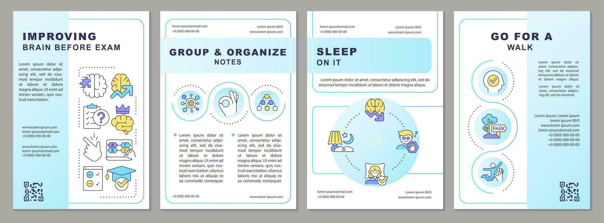 Improving brain before exam blue brochure template. Effective study. Leaflet design with linear icons. Editable 4 vector layouts for presentation, annual reports Pro Vector
