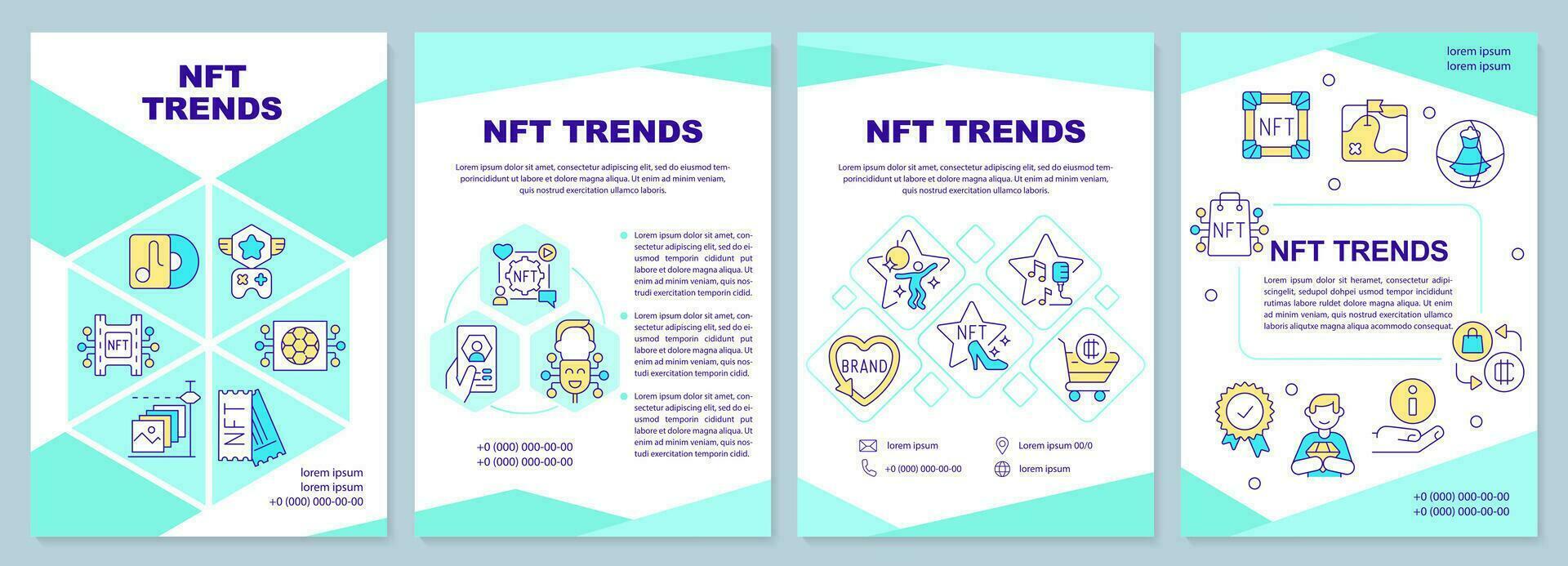 NFT trends mint brochure template. Blockchain network. Leaflet design with linear icons. Editable 4 vector layouts for presentation, annual reports Pro Vector