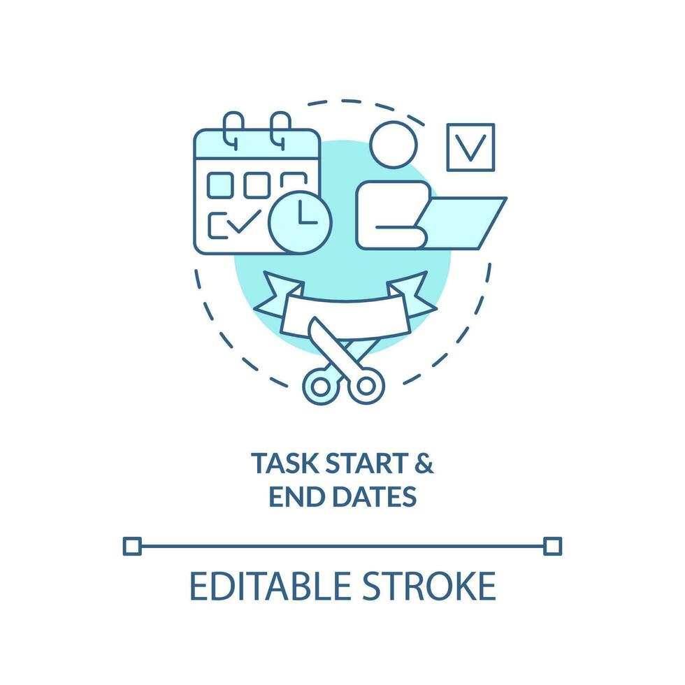 Task start and end dates turquoise concept icon. Completion. Project plan includes abstract idea thin line illustration. Isolated outline drawing. Editable stroke Pro Vector