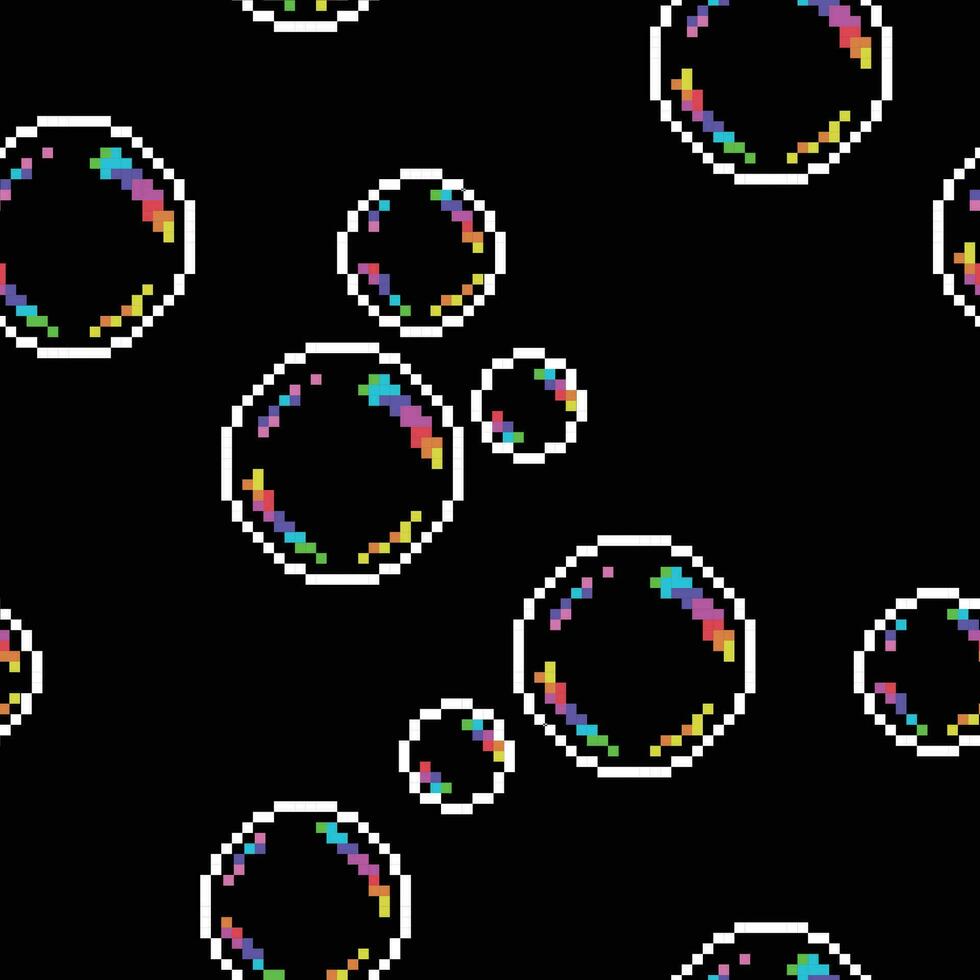 Vector seamless pattern with bubbles on black. Pixel art style Pro Vector