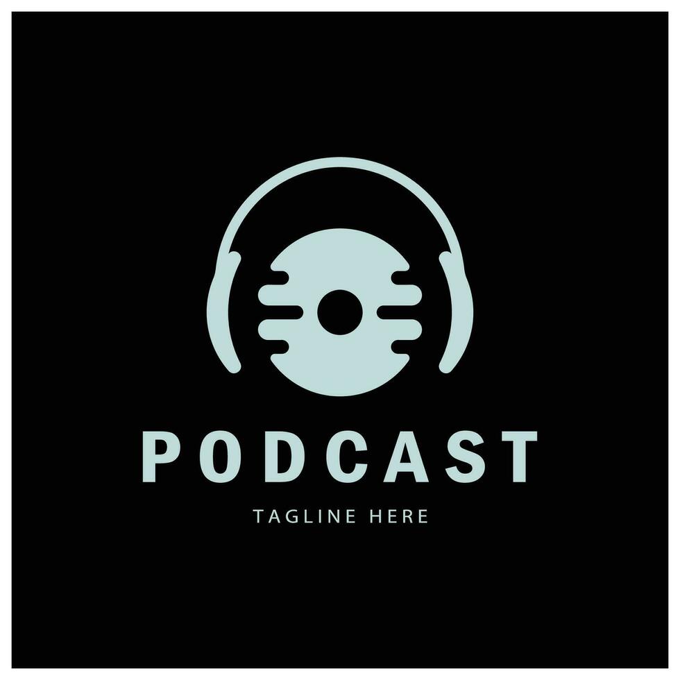 podcast logo with microphone and earphone audio, radio waves. for studio, talk show, chat, information sharing, interview, multimedia and web. vector