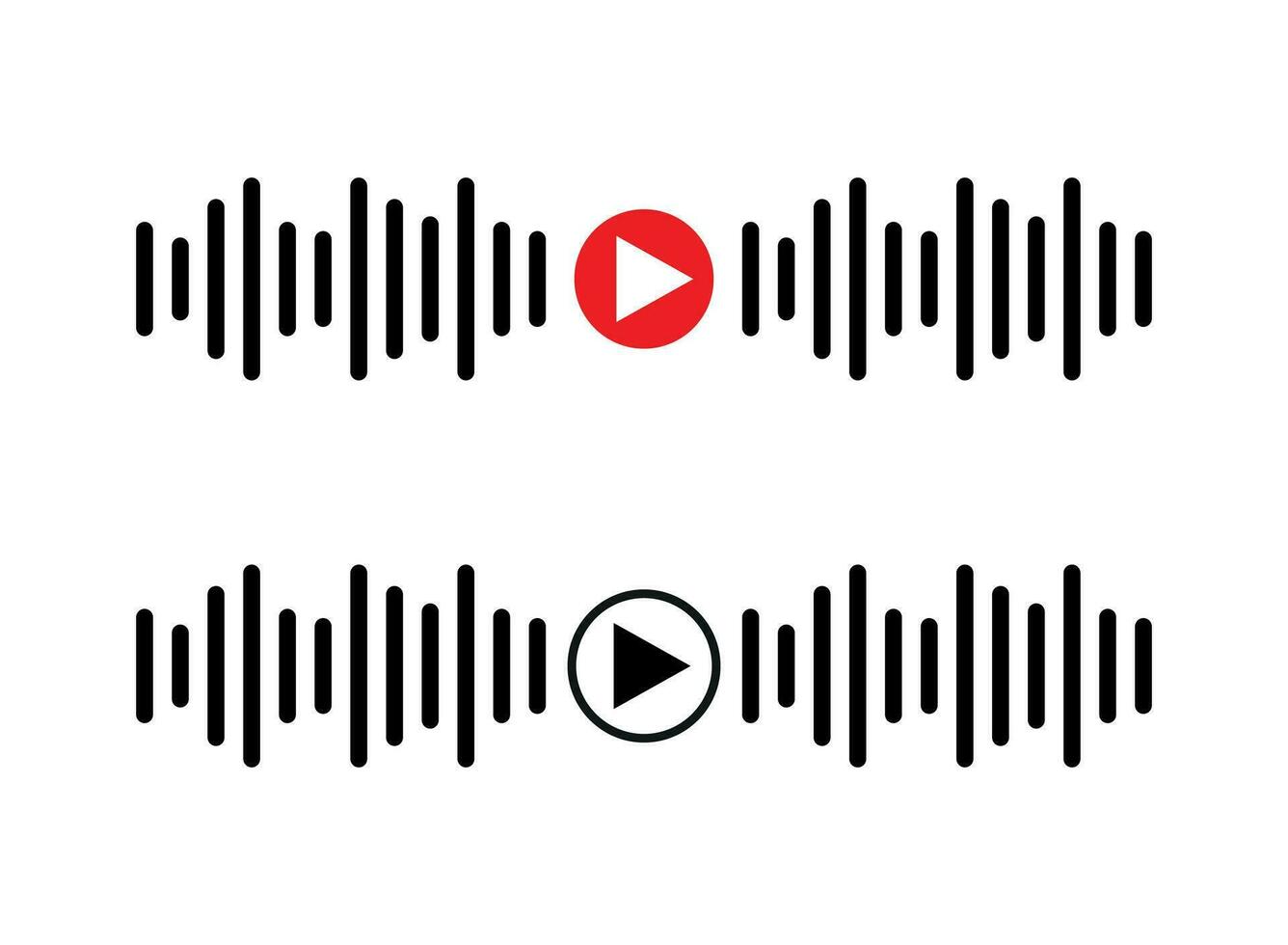 Sound wave icon, podcast player interface, music symbol, sound wave, loading progress bar and buttons. Pro Vector