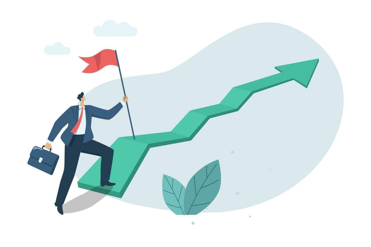 The first step to start, difficult path is the path to beautiful rewards The challenge to goals and starting, Businessman started walking upward arrow to reach target, Vector design illustration. Pro Vector