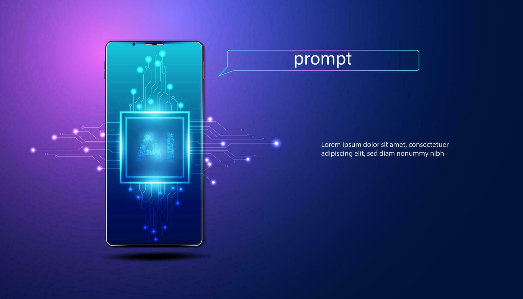Abstract Artificial Intelligence and phone Technology The use of AI to search information on the phone using current search terms. Background with Computer Systems Circuit Boards. Pro Vector
