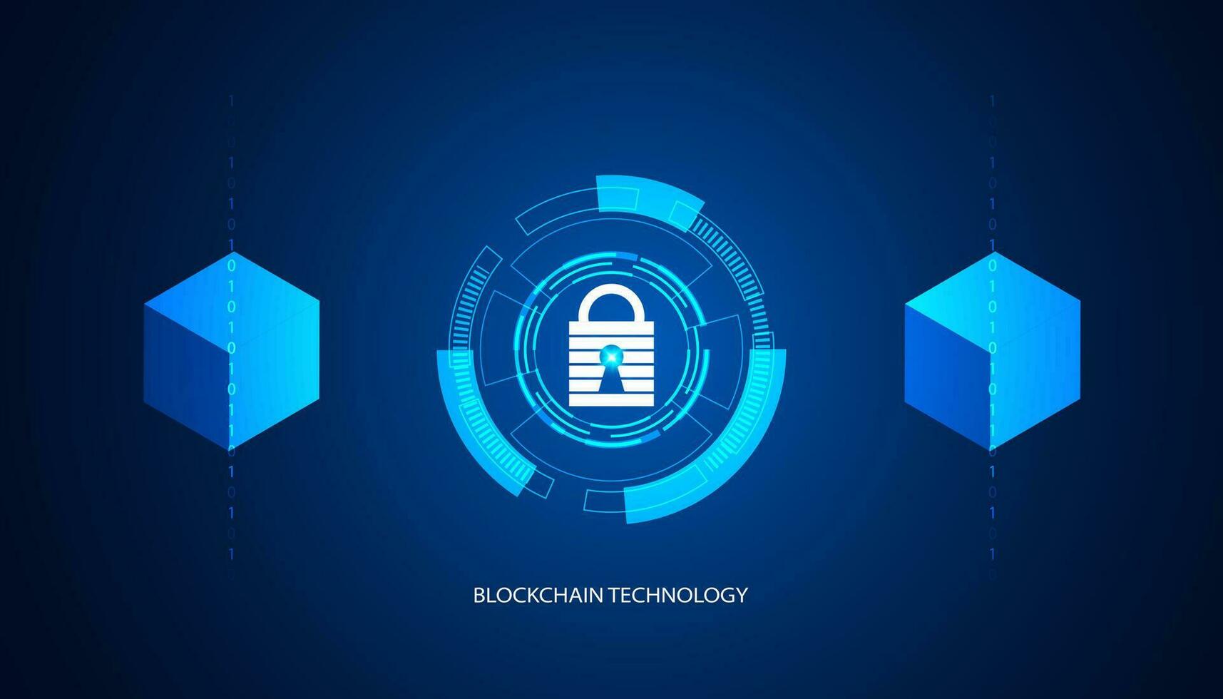 Digital square abstract and padlock digital circuit, circle, hi-tech, blockchain cyber security, technology, cryptocurrency, decentralized on blue background, modern, futuristic. Pro Vector