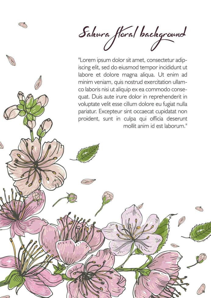 Spring background with blooming sakura flowers. Design template with place for text. Pro Vector