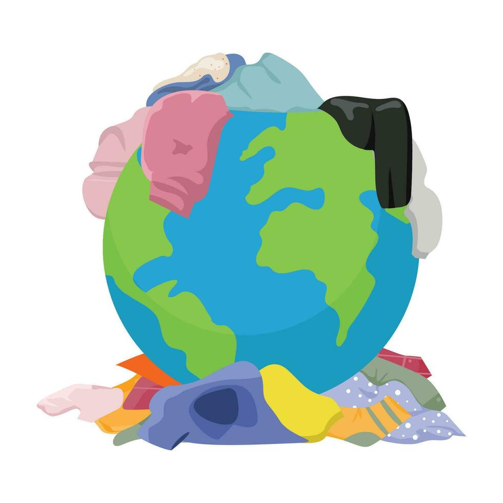 Overconsumption problem. Character buying too much clothes, technics and other stuff. Environment and resources issue concept. Pro Vector